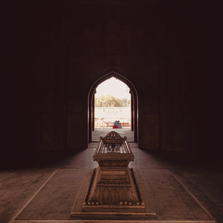I was here, standing in front of the gate of Safdarjung Tomb, when I saw a pigeon, sitting under the ornamented Jharoka, still, as if there’s nothing else to do.